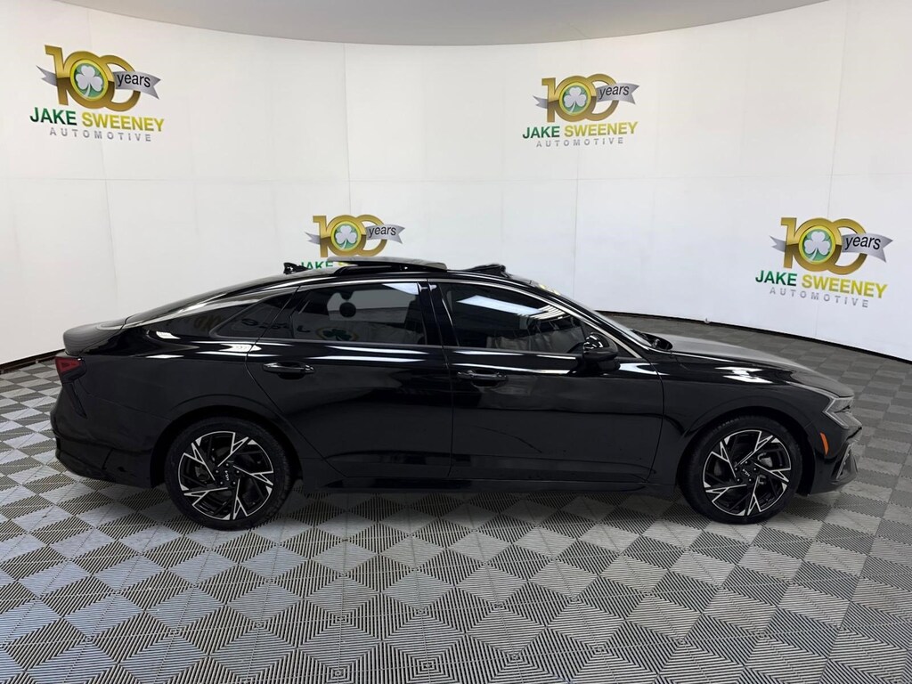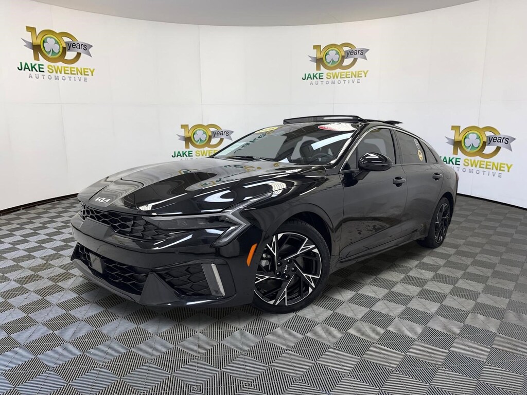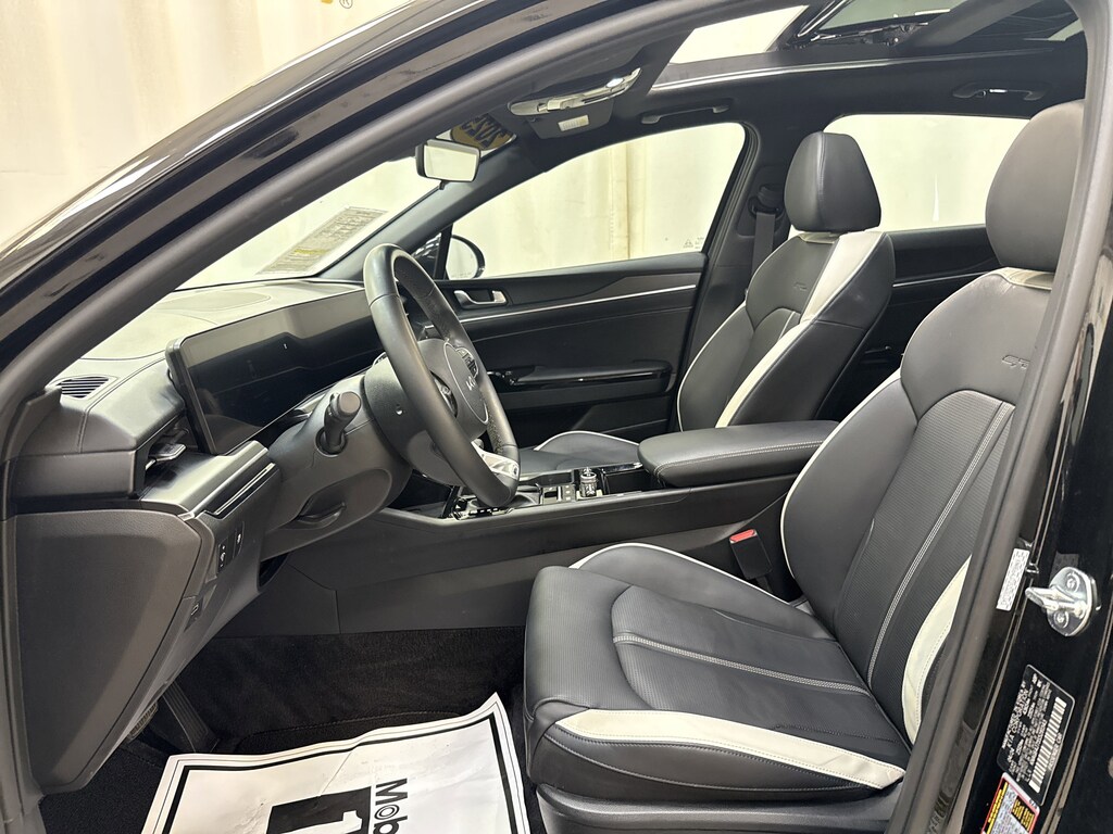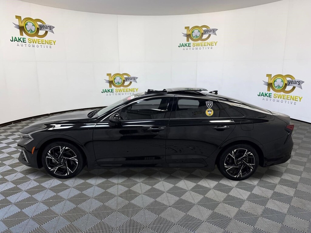 Our sporty One Owner, No Accidents Reported 2025 Kia K5 GT-Line Sedan is designed for dynamic driving in Aurora Black Pearl! Powered by a 2.5 Liter 4 Cylinder supplying 191hp to an 8 Speed Automatic transmission with Drive Mode Select. A responsive suspension helps you enjoy athletic handling, and this Front Wheel Drive sedan sees nearly 37mpg on the highway. A fierce appearance comes into the picture with our K5's LED lighting, fog lamps, gloss-black wheels, aggressive GT body styling, a sunroof, a hands-free trunk, and gloss-black mirror caps.
