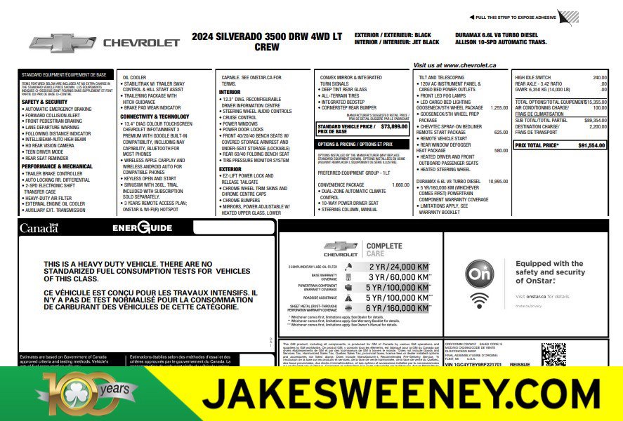 Mileage: 39,029 miles miles, Engine: 6.6L V-8 Diesel, Transmission: Automatic, Drive Line: 4WD, Exterior Color: Black, Interior Color: Jet Black, Cloth seat trim,Stock #: G20152, VIN: 1GC4YTEY9RF221701