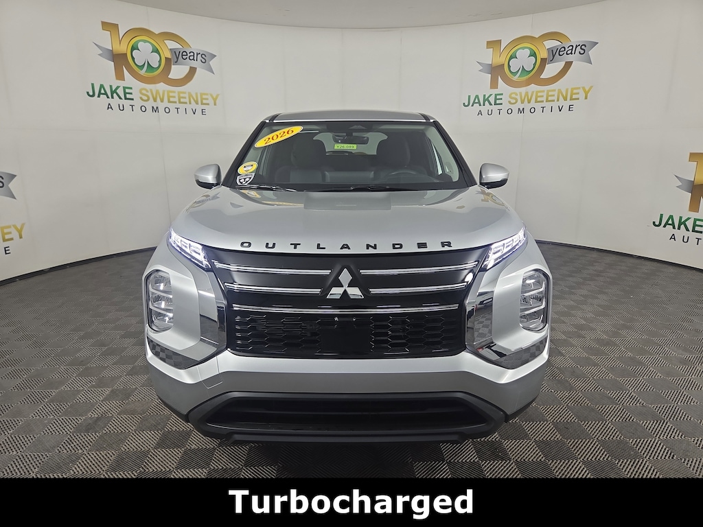 Put yourself in our 2026 Mitsubishi Outlander ES styled in Alloy Silver Metallic. Motivated by a 1.5 Liter 4 Cylinder offering 175hp connected to a CVT with dedicated modes for Gravel and Snow. This Front Wheel Drive SUV also shows smooth handling and sees nearly 31mpg on the highway. A dramatic grille helps our Outlander make a bold impression with its LED lighting, stylish alloy wheels, and power mirrors with built-in turn signals.