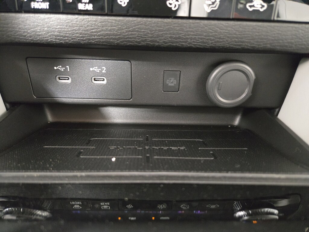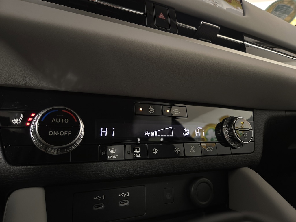 Our SE cabin is equipped with heated leatherette front seats, eight-way power for the driver, second and third-row seating, a leather-wrapped steering wheel, dual-zone automatic climate control, FastKEY keyless access, and pushbutton ignition. Technology includes a 9-inch touchscreen, a 7-inch driver display, Android Auto®, wireless Apple CarPlay®, Bluetooth®, a six-speaker audio system, and HD Radio.