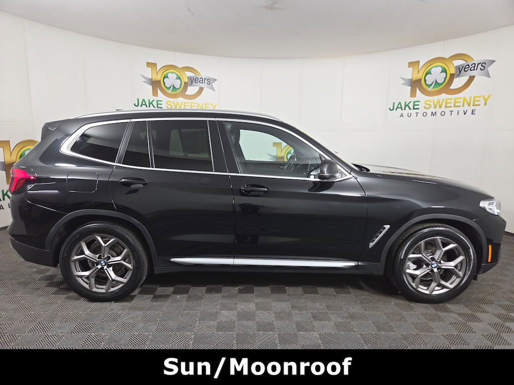 CARFAX One-Owner. Clean CARFAX. Black Sapphire Metallic 2023 BMW X3 xDrive30i AWD 8-Speed Automatic Sport 2.0L I4 TwinPower Turbo **MOON ROOF**, *NAVIIGATION*, **APPLE AND ANDROID AUTO**, **HEATED SEATS**, **BLUETOOTH**, **POWER SEAT**, **BACKUP CAMERA**, **KEYLESS ENTRY**, **PREMIUM SOUND**, **LEATHER SEATS**, **PUSH BUTTON START/STOP**, **POWER LIFTGATE**, 8-Speed Automatic Sport.