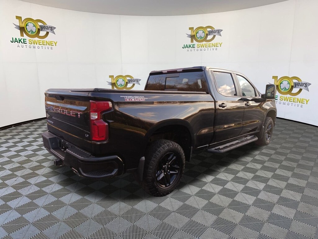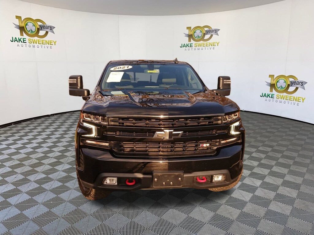 A fearless adventure machine, our No Accidents Reported 2021 Chevrolet Silverado 1500 LT Trail Boss Crew Cab 4X4 with the Convenience II Package helps you take charge of every drive in Black! Motivated by a mighty 5.3 Liter EcoTec3 V8 generating 355hp connected to a 10 Speed Automatic transmission to get you through harsh conditions. This Four Wheel Drive truck goes even further with a two-speed transfer case, a locking rear differential, and a Z71 off-road suspension. It scores nearly 21mpg on the highway while showing off black alloy wheels and red recovery hooks, LED lighting, heated power mirrors, off-road assist steps, a power sunroof, a tonneau cover, an EZ Lift & Lower tailgate, and a CornerStep rear bumper.