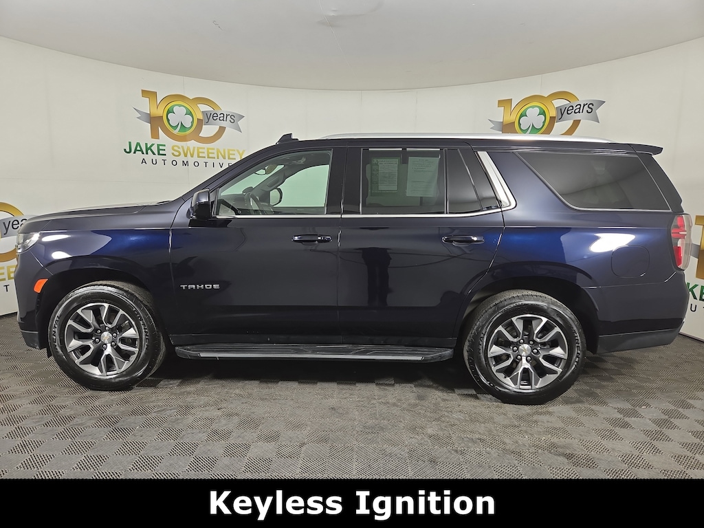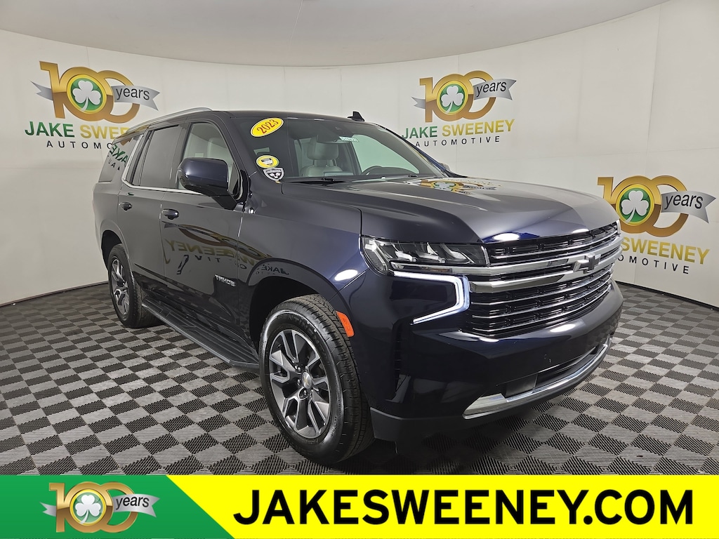 Jake Sweeney Is Here to Help! If you are in need of a new or used vehicle, we are offering you the ability to shop online and have your vehicle delivered to your home. Midnight Blue Metallic 2023 Chevrolet Tahoe LT 4WD 10-Speed Automatic with Overdrive EcoTec3 5.3L V8 REMAINDER OF FACTORY WARRANTY, LIFETIME POWERTRAIN WARRANTY, SUNROOF, SECOND ROW BUCKET SEATS, 4WD, Gideon/Very Dark Atmosphere Leather, 1st & 2nd Row Color-Keyed Carpeted Floor Mats, Auto-Dimming Inside Rear-View Mirror, Bose 9-Speaker Stereo Audio System Feature, Bright Front & Rear Door Sill Plates, Color-Keyed Carpeting Floor Covering, Driver & Front Outboard Passenger Airbags, Enhanced Driver Information Center, Floor Console w/Storage Area, Hands-Free Rear Power Programmable Liftgate, Infotainment Display, LED Daytime Running Lamps, Memory Settings for Driver, Preferred Equipment Group 1LT, Remote Start, SiriusXM Radio w/360L, Universal Home Remote, Wheels: 20" x 9" Painted Aluminum, Wireless Charging, Wrapped Steering Wheel.Odometer is 38103 miles below market average!