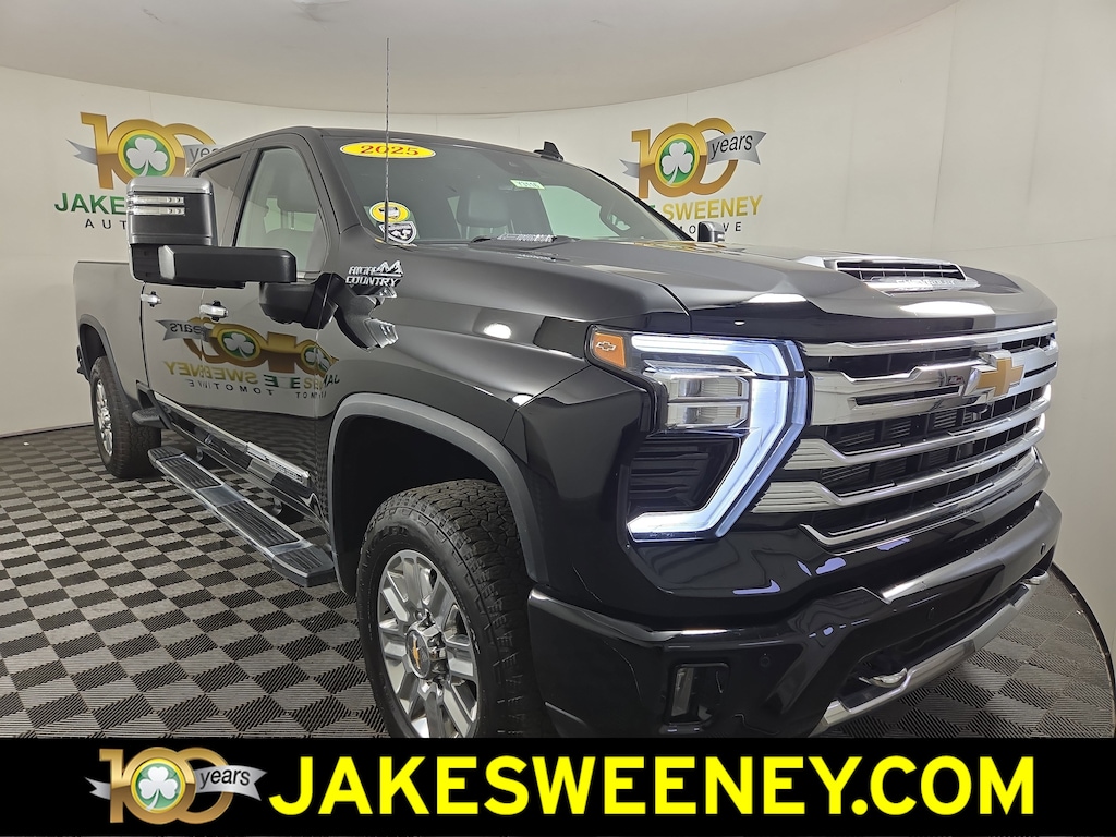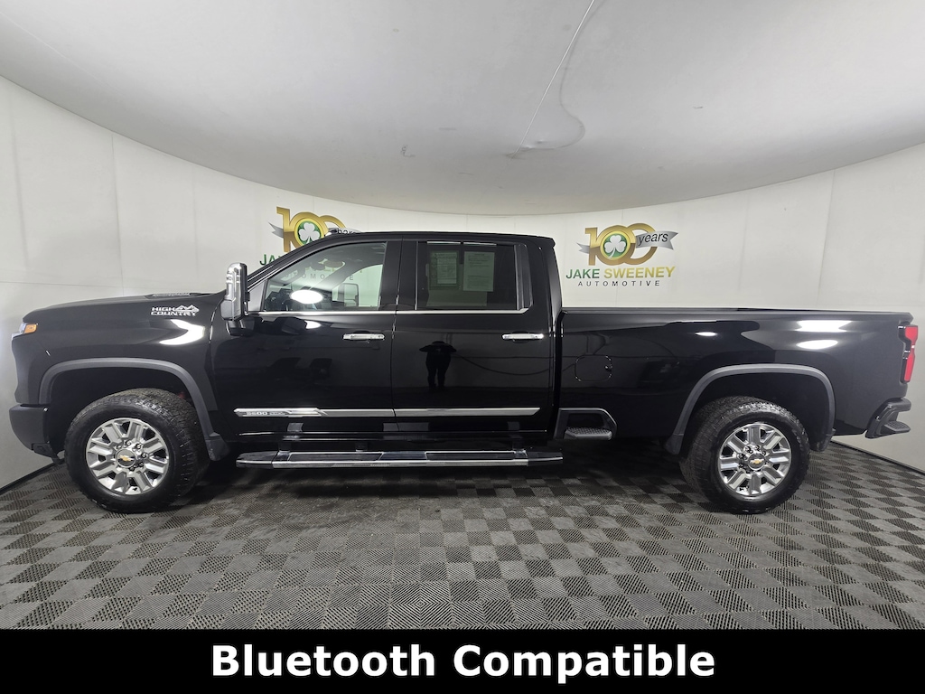 Clean CARFAX. Black 2025 Chevrolet Silverado 3500HD High Country 4WD 10-Speed Automatic Duramax 6.6L V8 Turbodiesel 10-Speed Automatic, 4WD, Jet Black Leather.