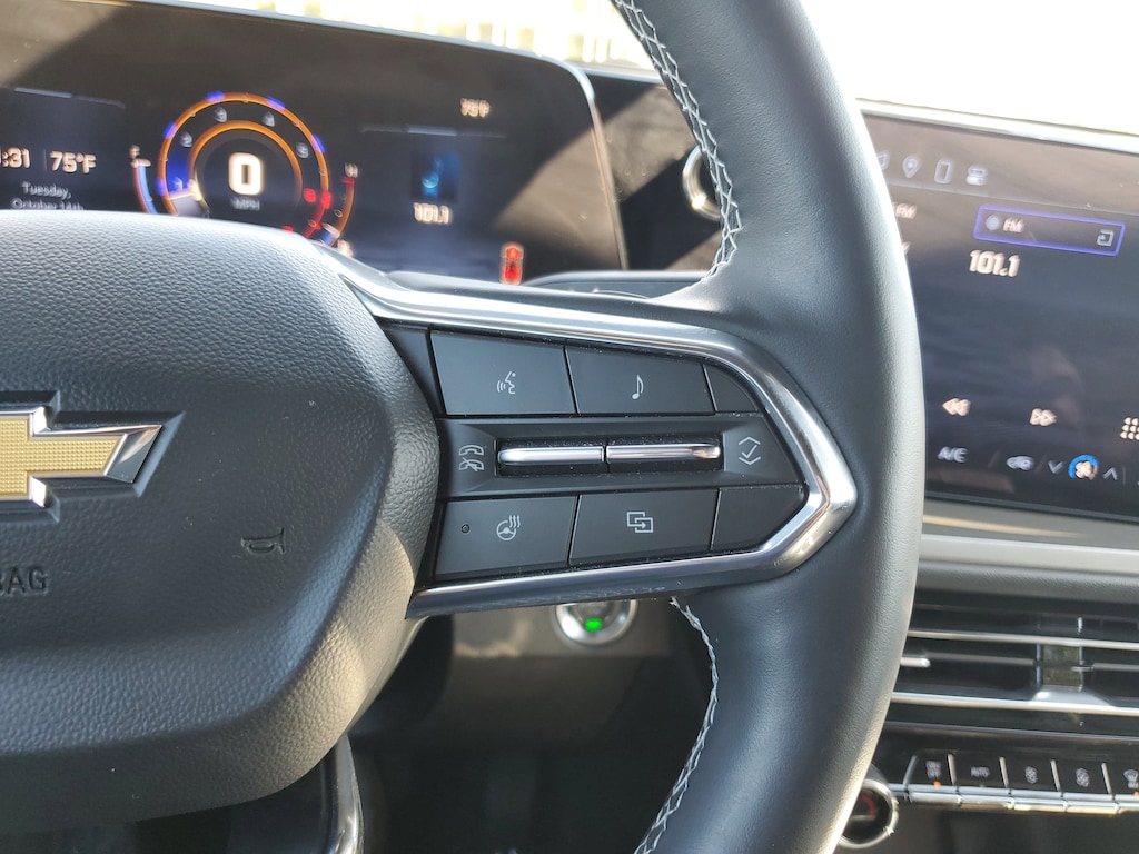 Roomy and relaxing, our LT cabin is equipped for adventure with heated premium cloth front seats with eight-way power for the driver, folding second/third rows, a heated-wrapped steering wheel, tri-zone automatic climate control, keyless access/ignition, and remote start. The interior shows its intelligence with a 17-inch touchscreen, an 11-inch driver display, WiFi compatibility, Google Built-in with navigation, Bluetooth®, and a six-speaker sound system. There's ample room for cargo, too!