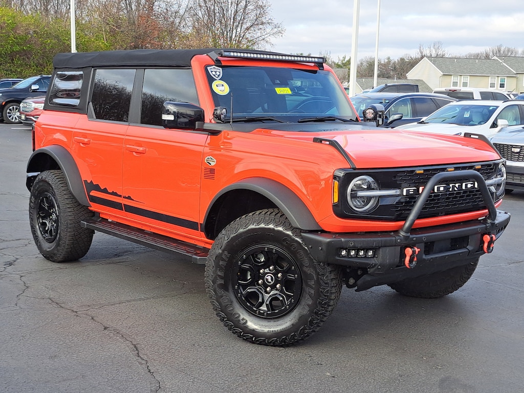 Have you ever wondered where to buy a Certified used car? Look no further! Jake Sweeney is here to Help. If you are in need of a new or used vehicle, we are offering you the ability to shop online and have your vehicle delivered to your home. Come visit us in store as well for a fun, fast, and easy car buying experience! Race Red 2021 Ford Bronco Wildtrak 4WD 10-Speed Automatic 2.7L EcoBoost V6 12" LCD Capacitive Touchscreen w/Swipe Capability, 2 Smart Charging USB Ports In Dashboard, 360-Degree Camera, ABS brakes, Adaptive Cruise Control, Additional Sound Deadening, Compass, Connected Built-In Navigation, Equipment Group 354A Lux Package, Evasive Steering Assist, Exterior Parking Camera Rear, Forward Sensing System, Front Bucket Seats, Heated door mirrors, Heated Steering Wheel, Illuminated entry, Information on Demand Panel, Low tire pressure warning, Navigation system: Connected Navigation, Radio: B&O Sound System by Bang & Olufsen, Remote keyless entry, Sideview Mirrors, Telescoping steering wheel, Traction control, Universal Garage Door Opener, Wheels: 17" Black High Gloss-Painted Aluminum (64H), Wireless Charging Pad.