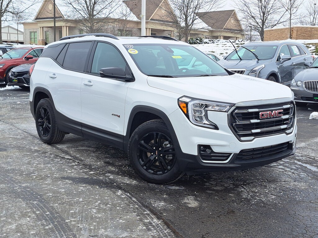 Have you ever wondered where to buy a Certified used car? Look no further! Jake Sweeney is here to Help. If you are in need of a new or used vehicle, we are offering you the ability to shop online and have your vehicle delivered to your home. Come visit us in store as well for a fun, fast, and easy car buying experience! Summit White 2023 GMC Terrain AT4 AWD 9-Speed Automatic 1.5L DOHC AWD, 6-Way Power Front Passenger Seat, 8-Way Power Driver Seat Adjuster, Adaptive Cruise Control, Auto High-beam Headlights, Bluetooth® For Phone, Brake assist, Driver & Front Passenger Heated Seats, Electronic Stability Control, Front Bucket Seats, Front Center Armrest, Front Passenger 2-Way Power Lumbar, Garage door transmitter, Heated front seats, Heated steering wheel, Illuminated entry, Infotainment Package II, Lane Change Alert w/Side Blind Zone Alert, Lane Departure Warning System, Memory seat, Power Driver Lumbar Control, Power driver seat, Power Liftgate, Power steering, Power windows, Preferred Equipment Group 4SC, Premium 7-Speaker Bose Sound System w/Amplifier, Radio: GMC Infotainment Audio System w/Navigation, Rear Cross-Traffic Alert, Rear Park Assist, Remote keyless entry, Safety Alert Seat, Side Blind Zone & Rear Cross Traffic, SiriusXM Radio, Skyscape Power Sunroof w/Power Sunscreen, Split folding rear seat, Steering wheel mounted audio controls, Telescoping steering wheel, Terrain Pro Safety Plus, Tilt steering wheel, Turn signal indicator mirrors, Wheels: 17" x 7" Gloss Black Aluminum, Wireless Apple CarPlay/Wireless Android Auto.