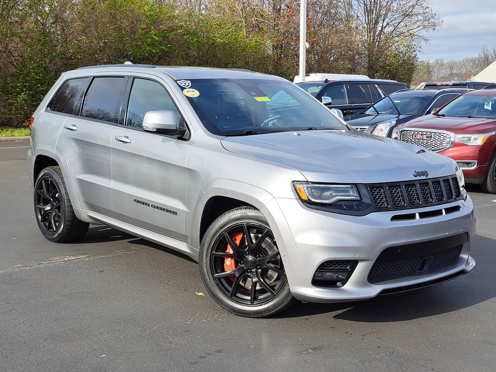 Have you ever wondered where to buy a Certified used car? Look no further! Jake Sweeney is here to Help. If you are in need of a new or used vehicle, we are offering you the ability to shop online and have your vehicle delivered to your home. Come visit us in store as well for a fun, fast, and easy car buying experience! Billet Silver Metallic Clearcoat 2018 Jeep Grand Cherokee SRT 4WD 8-Speed Automatic SRT HEMI 6.4L V8 MDS 4WD, 19 Speakers High Performance Audio, 7 & 4 Pin Wiring Harness, 825 Watt Amplifier, Adaptive suspension, Air Conditioning, AM/FM radio: SiriusXM, Apple CarPlay/Android Auto, Brake assist, Class IV Receiver Hitch, Dual-Pane Panoramic Sunroof, Electronic Stability Control, Four wheel independent suspension, Front Bucket Seats, Front dual zone A/C, Heated front seats, Heated rear seats, Heavy-Duty Engine Cooling, High performance Audio, High Performance Suspension, Navigation System, ParkView Rear Back-Up Camera, Power door mirrors, Power Liftgate, Power passenger seat, Premium Headliner Module, Quick Order Package 29L, Radio: Uconnect 4C Nav w/8.4" Display, Spoiler, Telescoping steering wheel, Traction control, Trailer Tow Group IV, Turn signal indicator mirrors, Ventilated front seats, Wheels: 20" x 10" Black Satin Aluminum.
