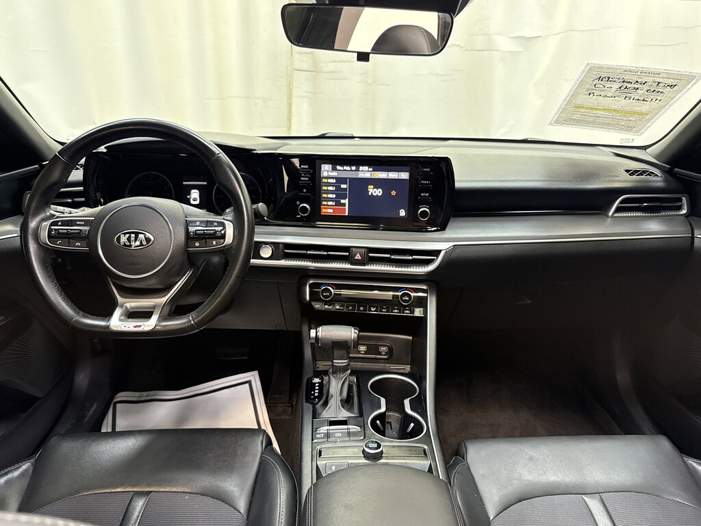 Go ahead and show off our 2021 Kia K5 GT-Line Sedan with you at the wheel and a bold Ebony Black finish on its sheet metal! Powered by a TurboCharged 1.6 Liter 4 Cylinder offering 180hp paired with an 8 Speed Automatic transmission for energetic performance. This Front Wheel Drive sedan taps into the joy of driving with its sophisticated suspension, and it returns nearly 37mpg on the highway to help save fuel. A stunning high-end design is yours to command with our K5, which boasts LED lighting, fog lamps, a sunroof, and aggressive body styling set off by 18-inch black-finished alloy wheels.