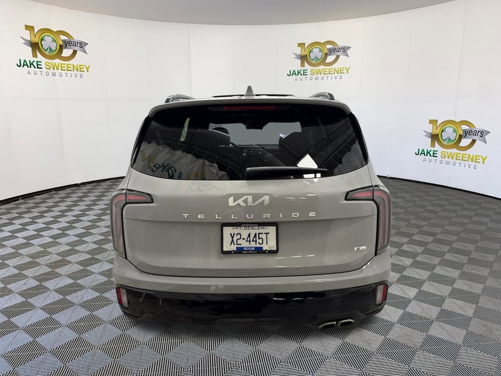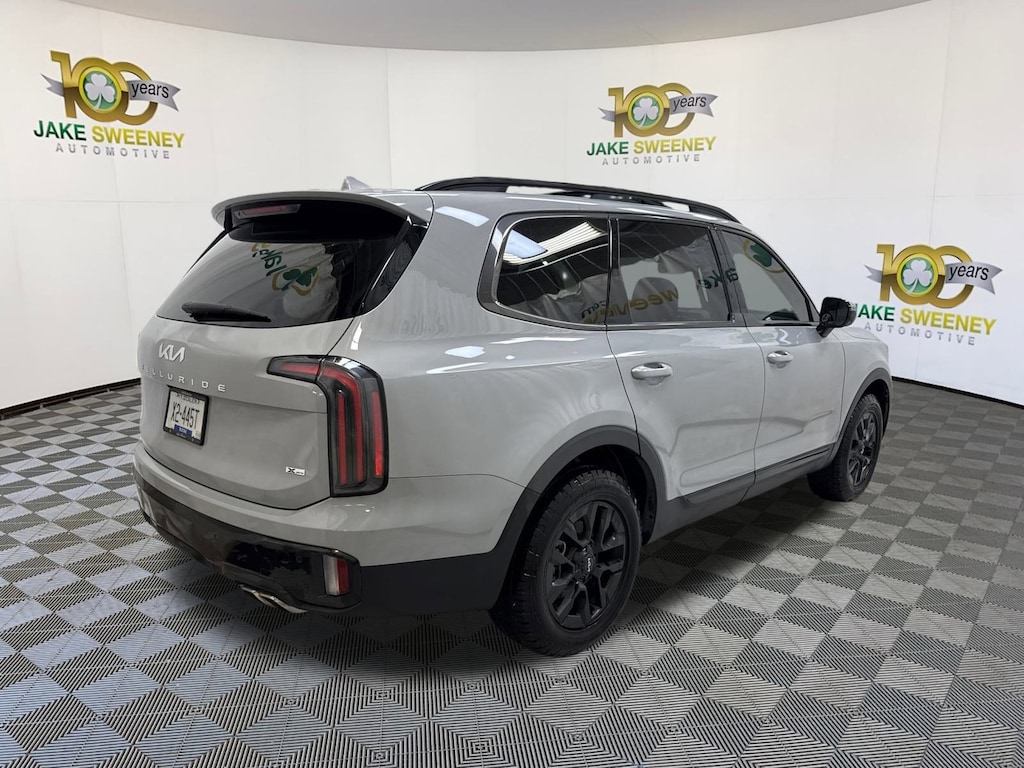Our 2024 Kia Telluride SX Prestige X-Pro AWD is a bold expression of family confidence in Wolf Gray! Motivated by a 3.8 Liter V6 generating 291hp to an 8 Speed Automatic transmission with a dedicated tow mode for heavy trailers. Tough trails feel easy with a standard center-locking differential and self-leveling rear suspension, and this All Wheel Drive SUV returns nearly 24mpg on the highway. Prepare for stares, since our Telluride treats you to rugged X-Pro design cues, dual sunroofs, LED lighting, fog lamps, matte-black wheels, a hands-free liftgate, and high-utility roof rails.