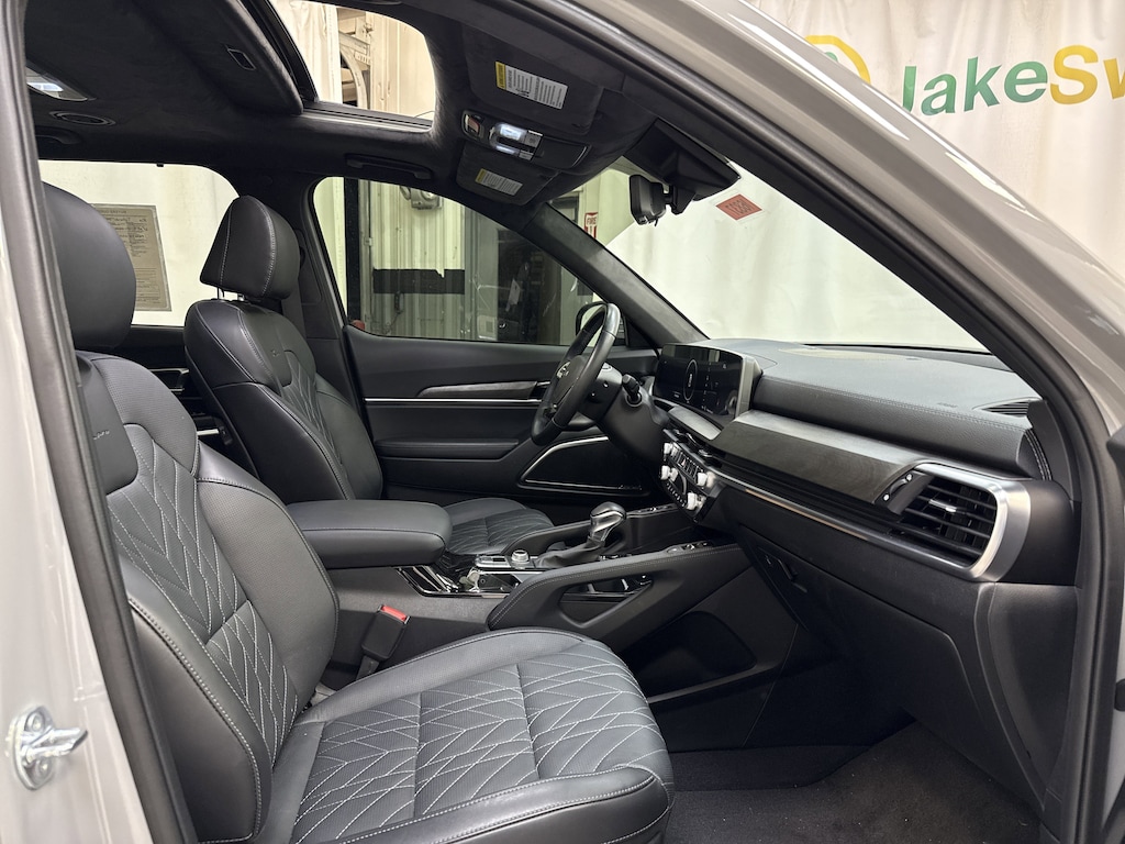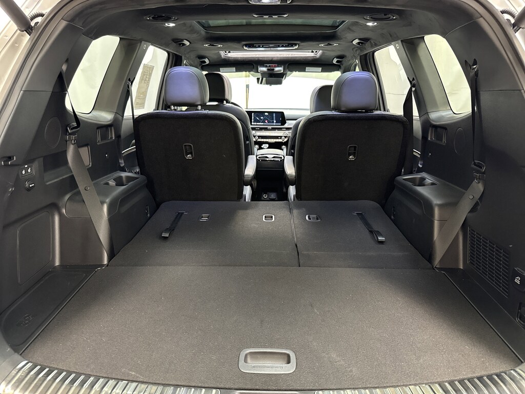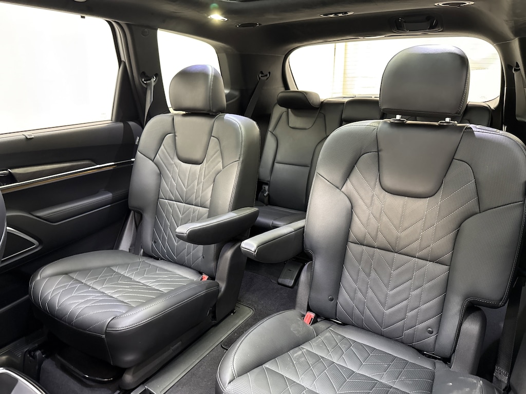 Fly first class in our SX Prestige X-Pro cabin with heated/ventilated Nappa leather front and second-row seats, a versatile third row, Smart Posture Control for the driver, a heated leather steering wheel, remote start, and dual-zone automatic climate control. A 12.3-inch driver display, a 12.3-inch touchscreen, full-color navigation, Android Auto®/Apple CarPlay®, WiFi compatibility, Haman Kardon audio, wireless charging, Bluetooth®, and an in-cabin intercom deliver digital convenience.
