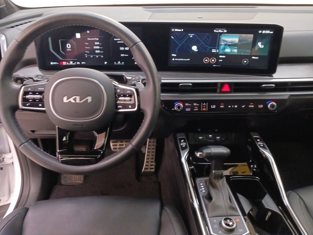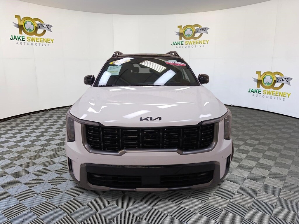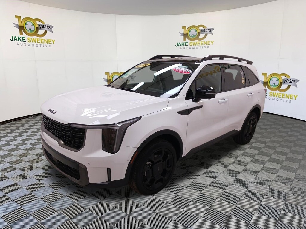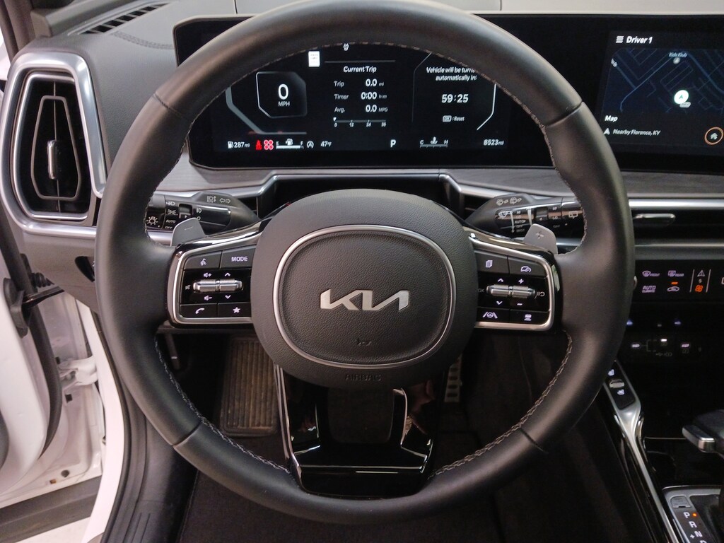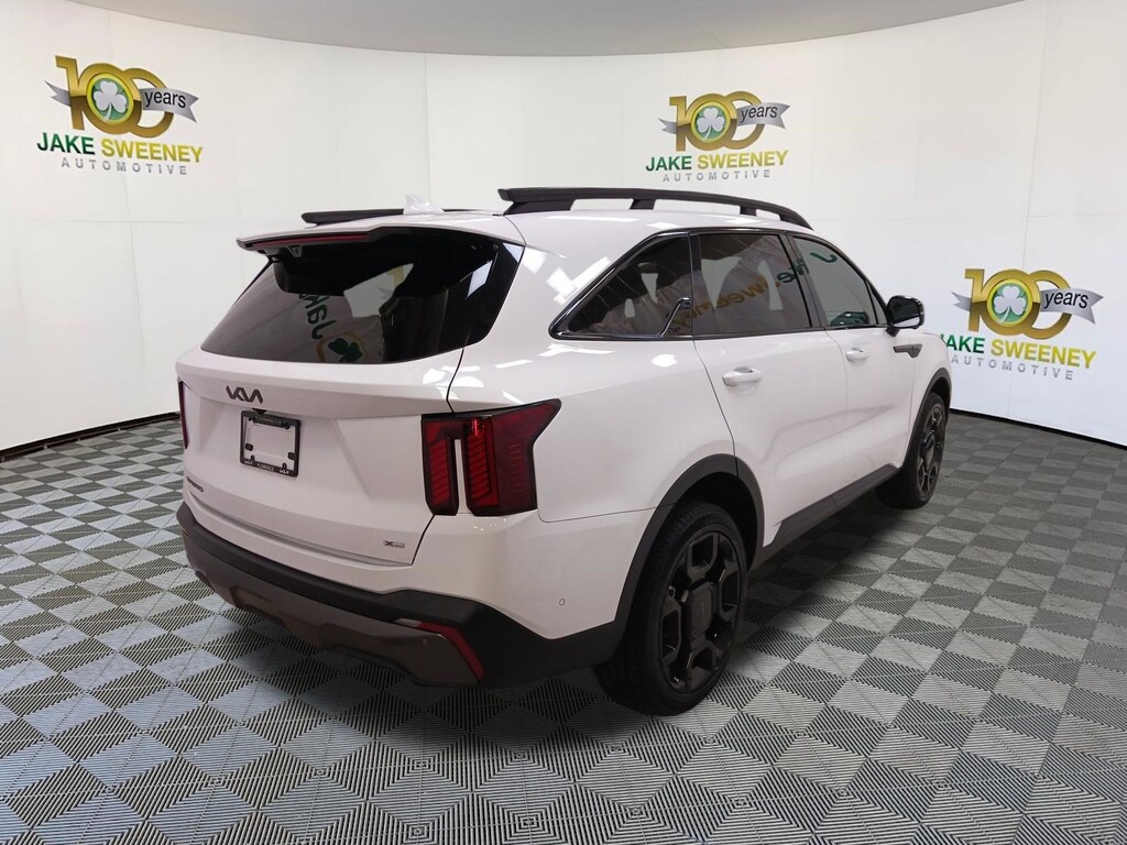 A premium SUV, our 2025 Kia Sorento X-Line SX Prestige AWD looks proud and powerful in Glacial White Pearl! Motivated by a TurboCharged 2.5 Liter 4 Cylinder serving up 281hp to an 8 Speed Dual-clutch Automatic transmission for confident performance. This All Wheel Drive SUV also has a center-locking differential and torque vectoring for rugged terrain, and it sees nearly 27mpg on the highway. Distinctive X-Line accents upgrade the exterior with high-utility roof rails, 20-inch gloss-black wheels, prominent body cladding, a panoramic sunroof, LED lighting, and a hands-free liftgate.