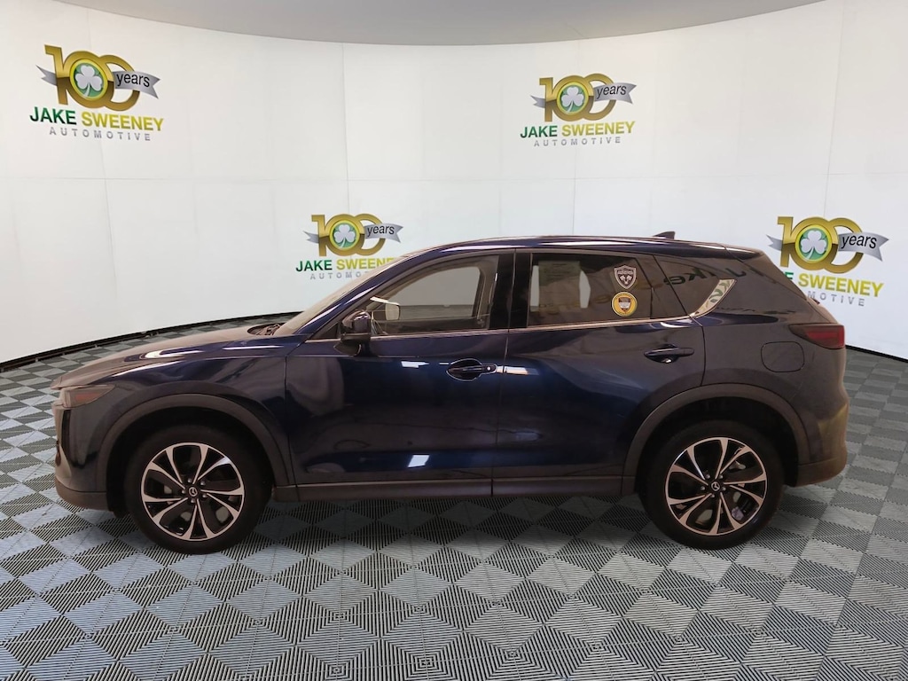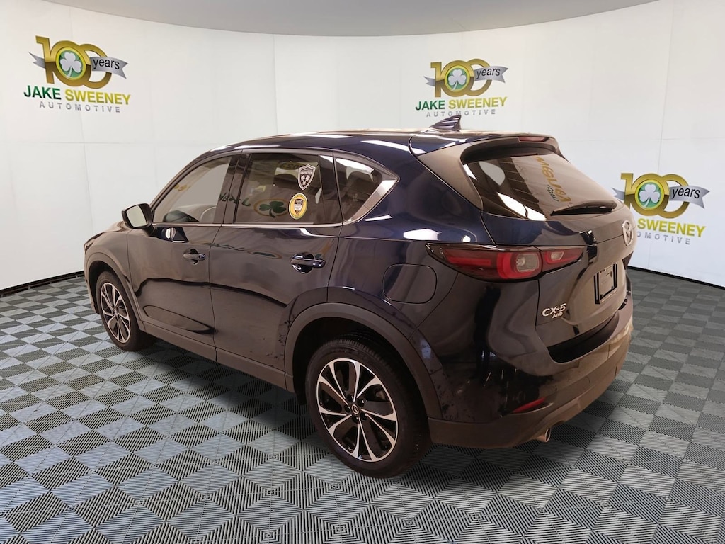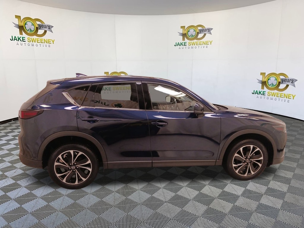 Our terrific One Owner 2023 Mazda CX-5 2.5 S Premium Plus AWD rides with refined performance in Deep Crystal Blue Mica! Powered by a 2.5 Liter 4 Cylinder generating 187hp connected to a paddle-shifted 6 Speed Automatic transmission for driver-focused adventures. You can also enjoy the added capability of dedicated Sport and Off-road modes, and this All Wheel Drive SUV sees nearly 30mpg on the highway. A stunning sight, our Mazda CX-5's design grabs attention with adaptive LED front lighting, a power sunroof, heated power-folding mirrors, a power liftgate, bright dual exhaust outlets, and black alloy wheels.