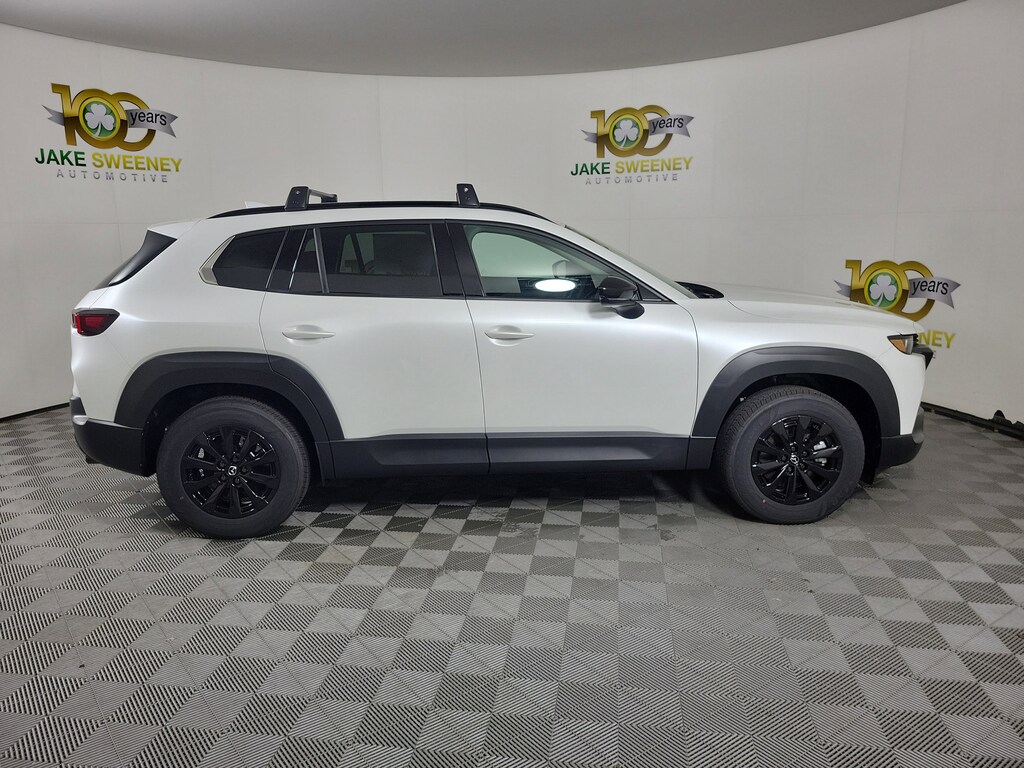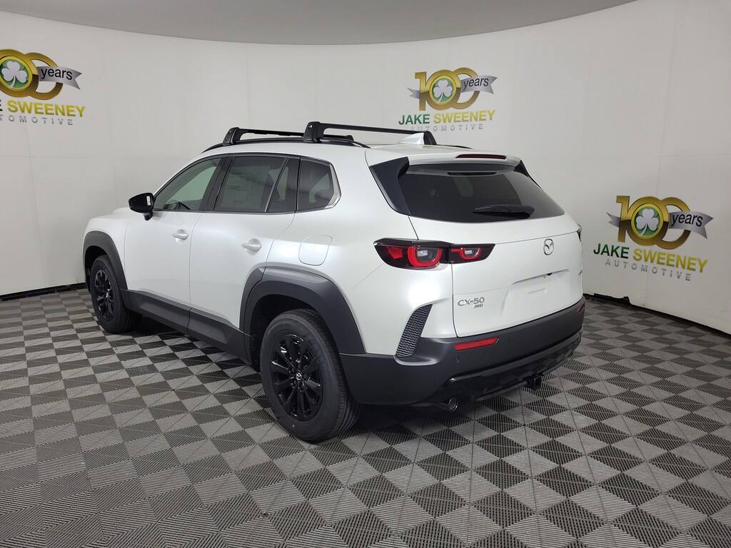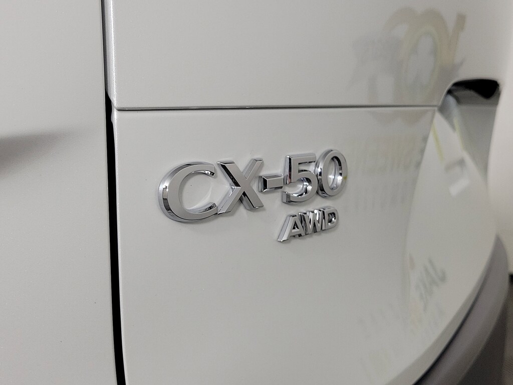 The sporty styling of our 2026 Mazda CX-50 Hybrid Premium eAWD looks fantastic in Wind Chill Pearl! Powered by a 2.5 Liter 4 Cylinder paired with three Electric Motors for a combined 219hp to an advanced CVT with multiple drive modes. Thanks to the responsive suspension, you can seek out twisty back roads confidently, and this All Wheel Drive SUV scores nearly 38mpg on the highway. Bold and sophisticated, our Premium features adaptive front LED lighting, a power liftgate, heated power mirrors, sunroof, dual exhaust outlets, and eye-catching alloy wheels.