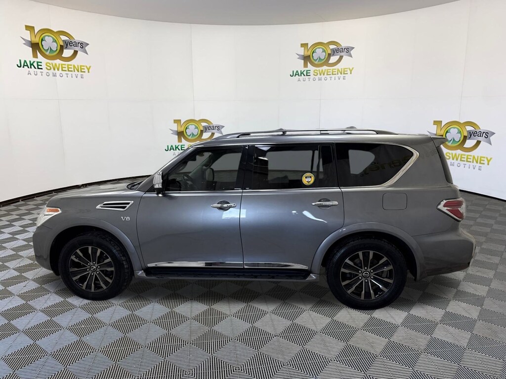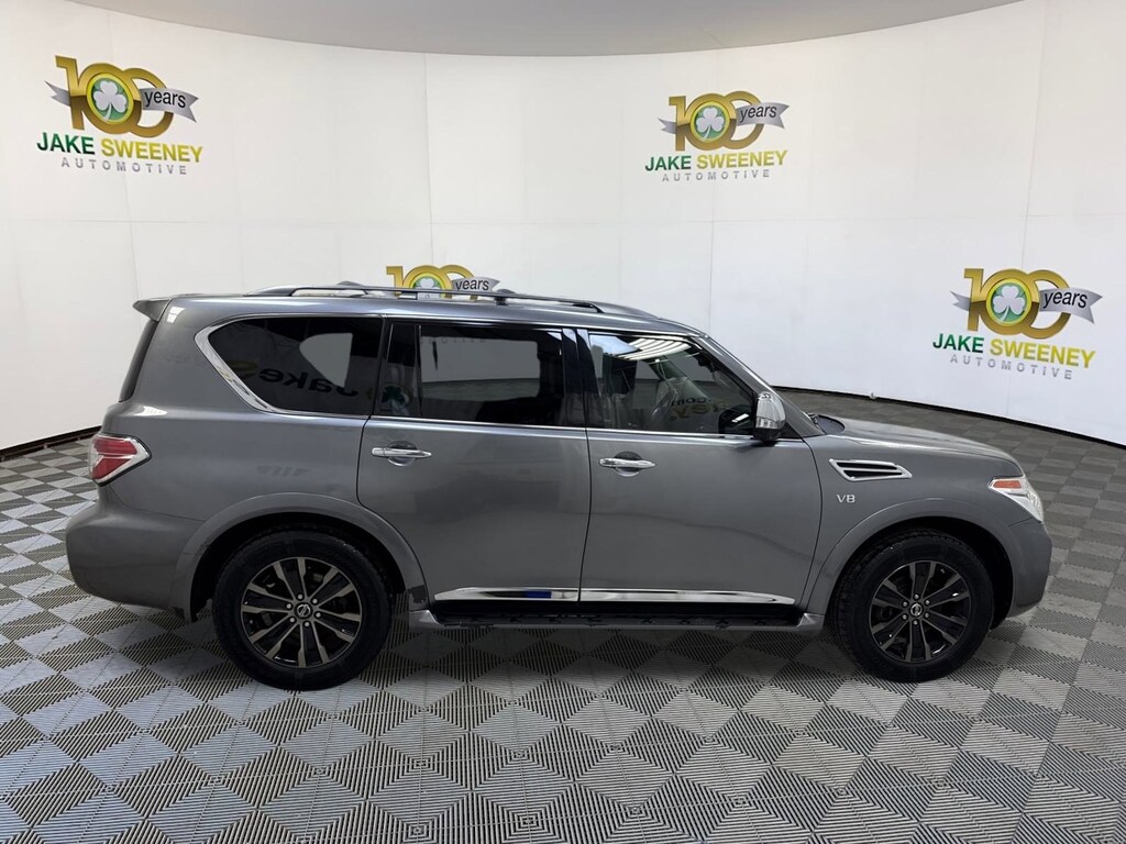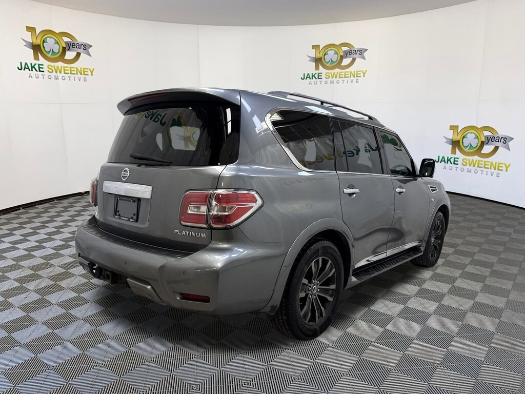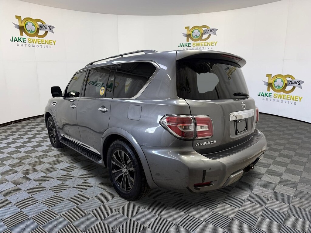 Our Gun Metallic 2018 Nissan Armada Platinum 4WD puts you firmly in command! Motivated by a 5.6 Liter V8 delivering 390hp matched to a responsive 7 Speed Automatic transmission with Tow/Haul mode that lets you easily handle heavy loads. Enjoy the smooth, confident ride of our Four Wheel Drive SUV that also returns nearly 18mpg on the highway while showing off premium good looks and smart practicality with LED lighting, fog lamps, a power tailgate, a sunroof, 20-inch alloy wheels, and a hitch receiver.