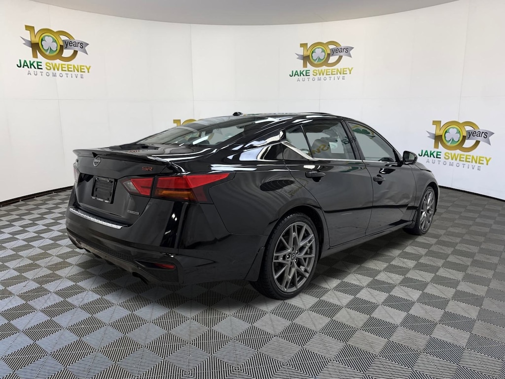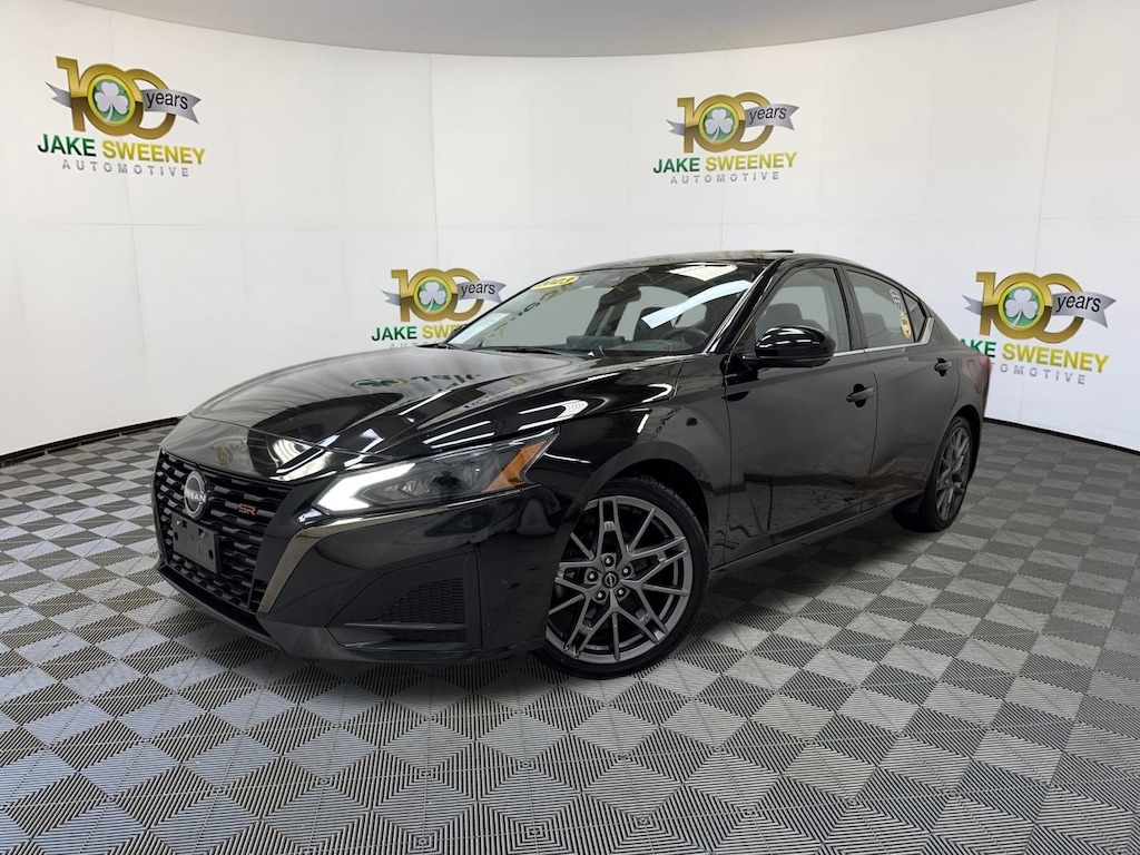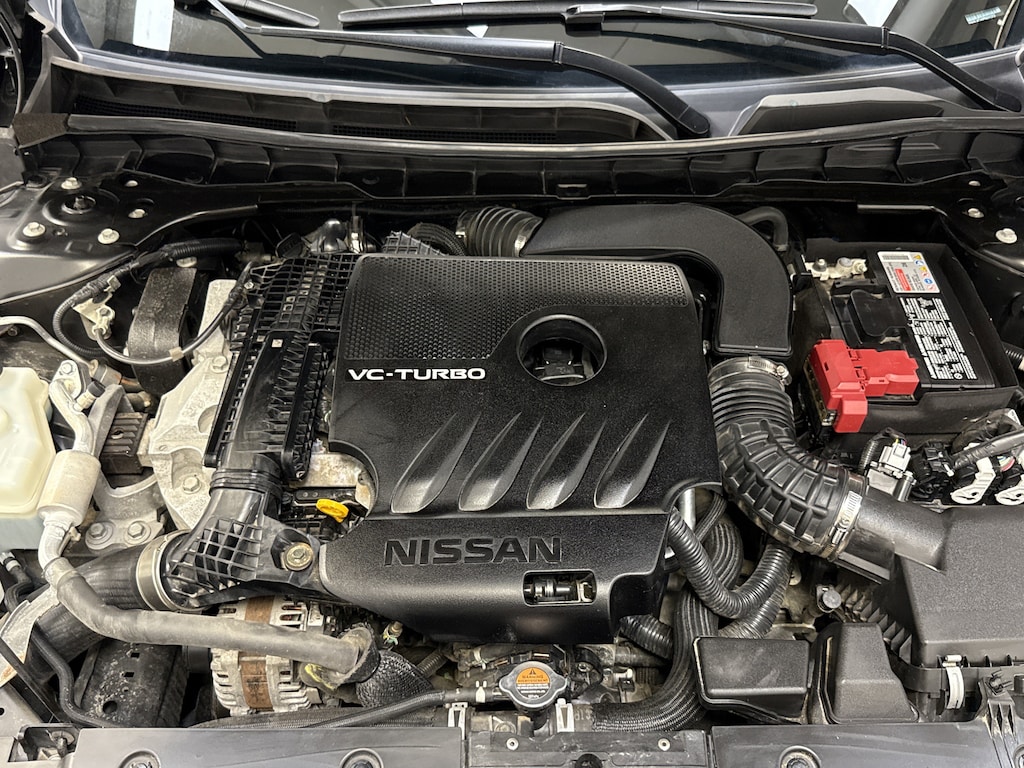 Buying our One Owner 2023 Nissan Altima SR VC-Turbo Sedan in Super Black can be a great way to boost your spirits! Motivated by a TurboCharged 2.0 Liter Variable Compression 4 Cylinder that provides 248hp matched to an Xtronic CVT for extra excitement. This Front Wheel Drive sedan also has a sport-tuned suspension for spirited handling, and it returns nearly 34mpg on the highway. Athletic Altima styling is displayed with a bold dark chrome V-Motion grille, LED lighting, a power sunroof, dual-chrome exhaust finishers, a rear spoiler, and 19-inch alloy wheels.