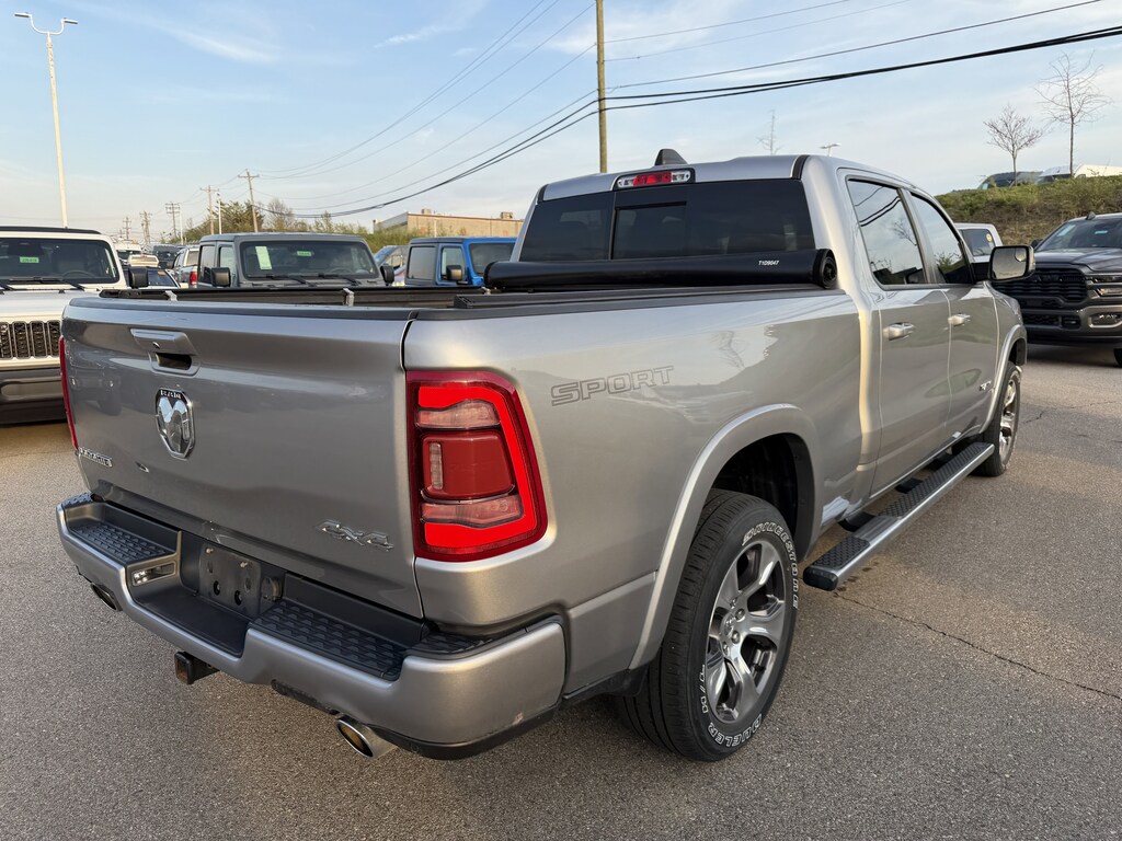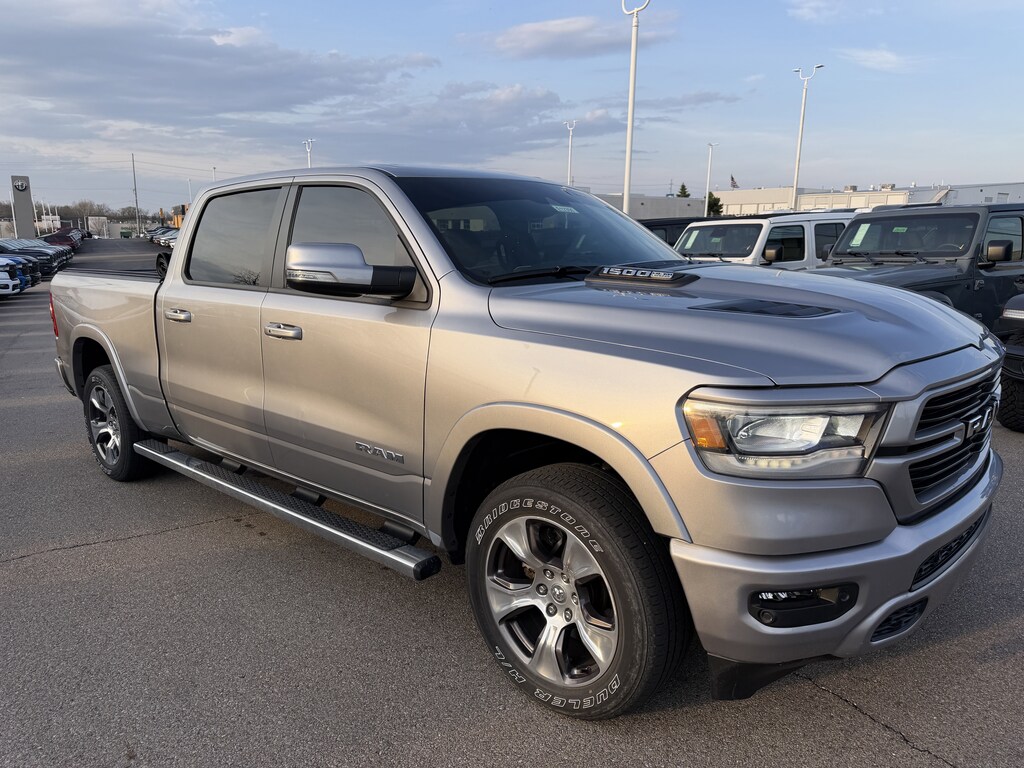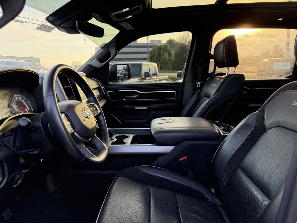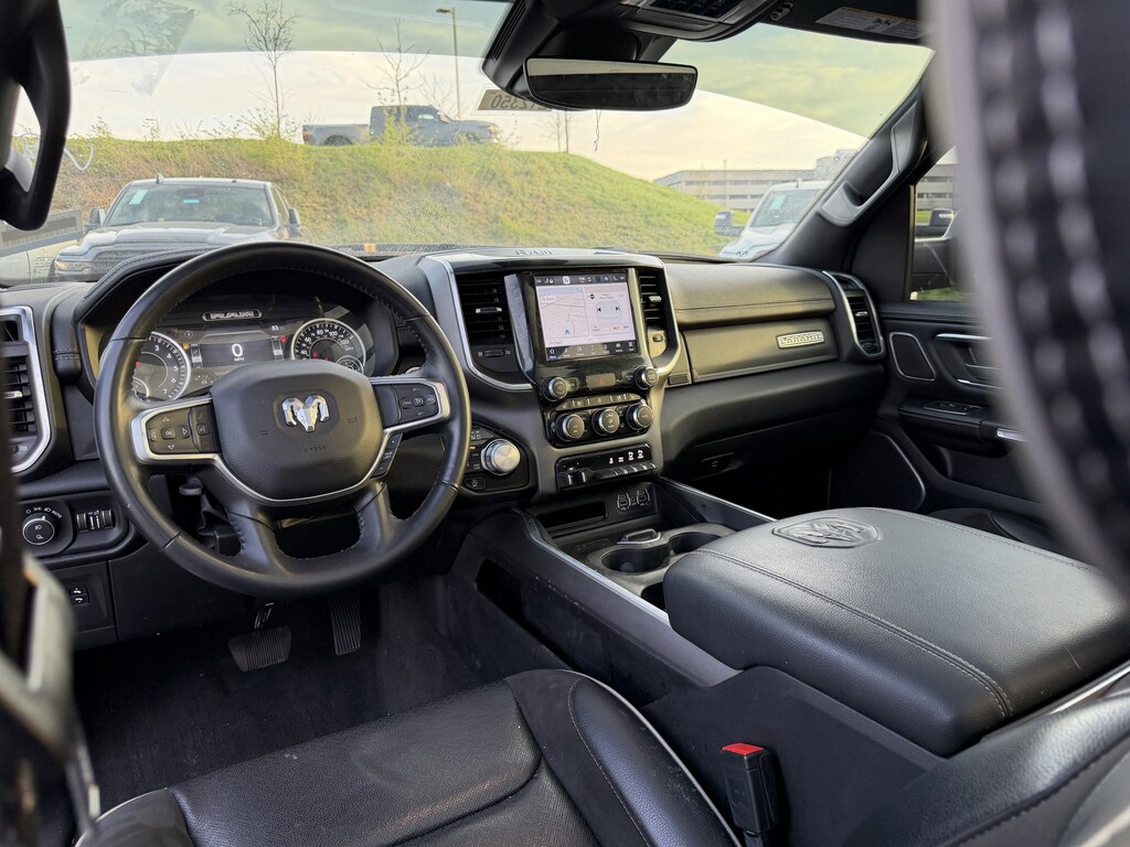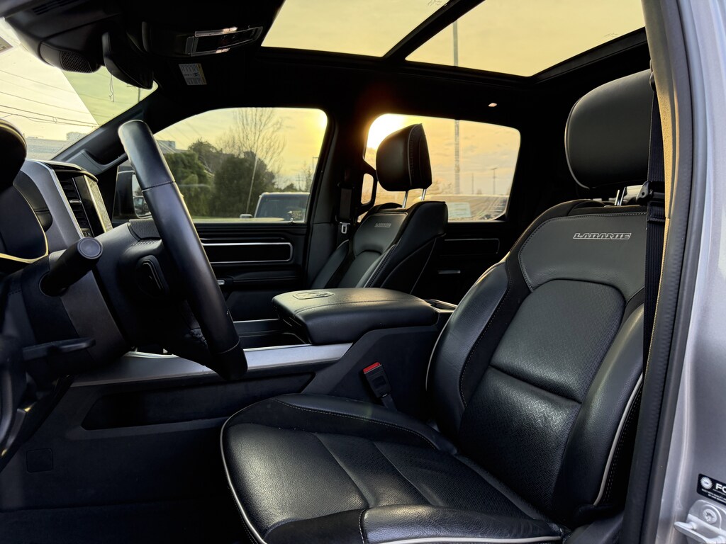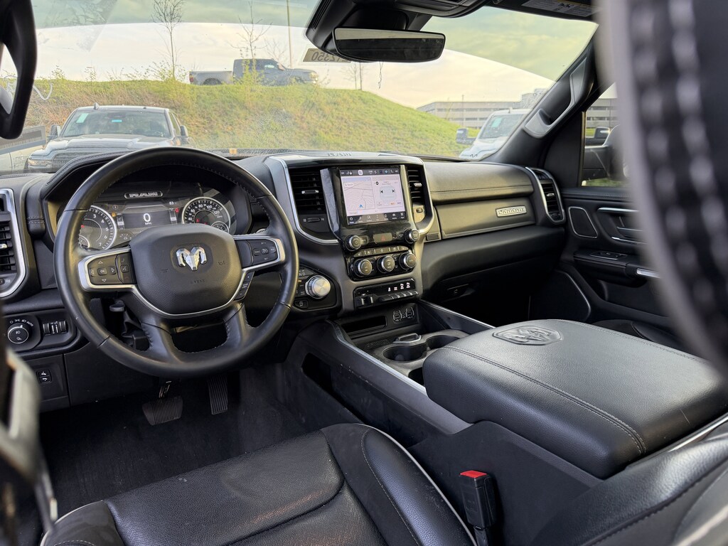 #1 Seat Foam Cushion, 2nd Row In Floor Storage Bins, 3 Rear Seat Head Restraints, 4 Way Front Headrests, 4G LTE Wi-Fi Hot Spot, 8.4" Touchscreen Display, All Plant-Installed Decals, All R1 High Radios, All Radio Equipped Vehicles, Apple CarPlay, Auto High Beam Headlamp Control, Auto-Dimming Exterior Driver Mirror, Black Interior Accents, Blind Spot & Cross Path Detection, Body Color Door Handles, Body Color Exterior Mirrors, Body Color Front Bumper, Body Color Premium Power Mirrors, Body Color Rear Bumper w/Step Pads, Bucket Seats, Connected Travel & Traffic Services, Connectivity - US/Canada, Convex Wide-Angle Mirror Insert, Delete LED Lamp - Floor Console Bin, Disassociated Touchscreen Display, Driver Seat Memory, Exterior Mirrors Courtesy Lamps, Exterior Mirrors w/Heating Element, Exterior Mirrors w/Memory, Exterior Mirrors w/Supplemental Signals, Foam Bottle Insert (Door Trim Panel), For Details, Visit DriveUconnect.com, For More Info, Call 800-643-2112, Front Seat Back Map Pockets, Full Length Upgraded Floor Console, Global Telematics Box Module (TBM), Google Android Auto, GPS Antenna Input, GPS Navigation, Grille Surround 3 Body Color Tex 2 Black, harman/kardon 19 Speaker Premium Sound, HD Radio, Heated Front Seats, Heated Steering Wheel, Integrated Center Stack Radio, Integrated Voice Command w/Bluetooth, Laramie Level II Equipment Group, Leather Trimmed Bucket Seats, ParkSense Front/Rear Park Assist w/Stop, Power 2-Way Driver Lumbar Adjust, Power 2-Way Passenger Lumbar Adjust, Power 8-Way Driver & Passenger Seats, Power-Folding Mirrors, Quick Order Package 27H Laramie, Radio: Uconnect 5 Nav w/8.4" Display, Rain Sensitive Windshield Wipers, Rear 60/40 Folding Seat, Remote Tailgate Release, SiriusXM Radio Service, SiriusXM w/360L, Sport Appearance Package, Sport Decal, Sport Performance Hood, Twill Film Appliques, USB Host Flip, Ventilated Front Seats, Wheels: 20" x 9" Premium Painted w/Inserts, Wireless Charging Pad.