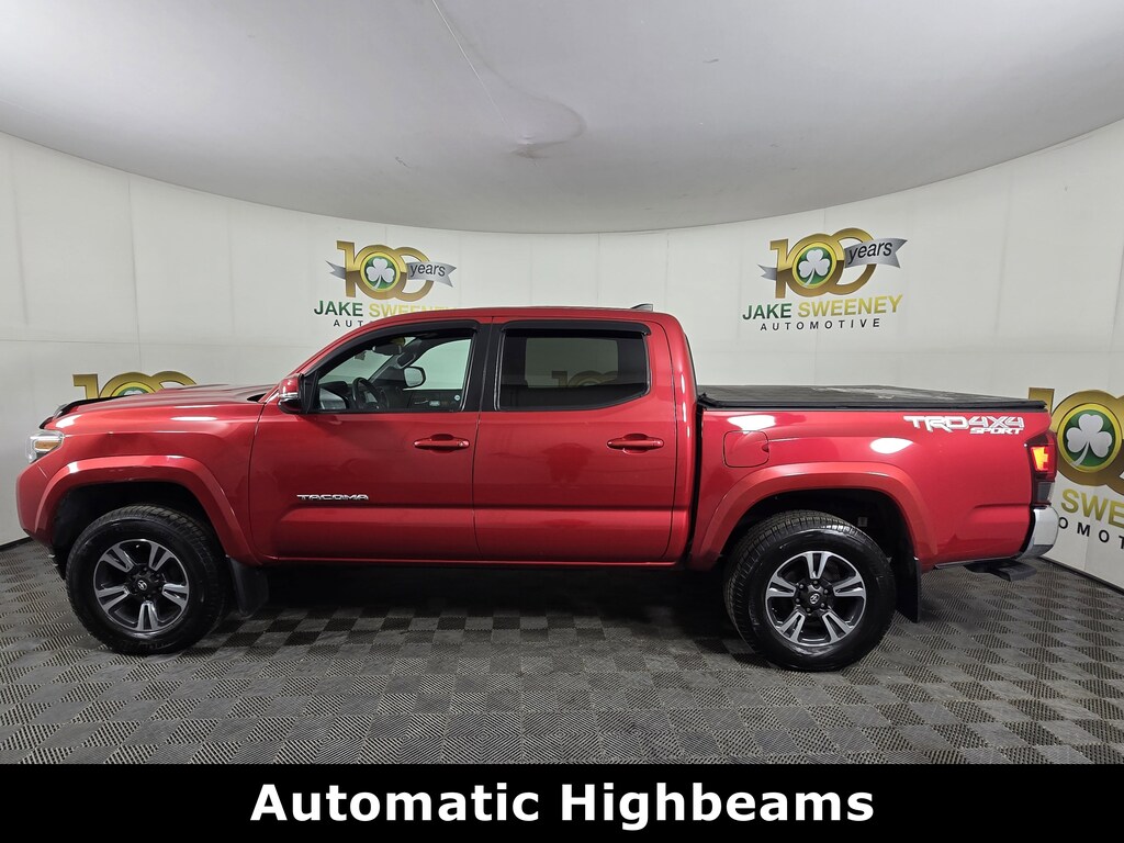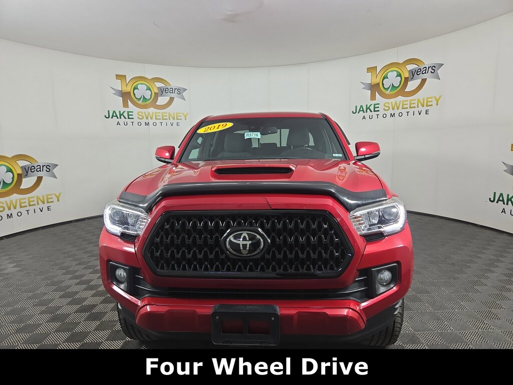 Jake Sweeney Is Here to Help! If you are in need of a new or used vehicle, we are offering you the ability to shop online and have your vehicle delivered to your home. Barcelona Red Metallic 2019 Toyota Tacoma TRD Sport V6 4WD 6-Speed Automatic 3.5L V6 PDI DOHC 24V LEV3-ULEV70 278hp 4WD, 120V/400W Deck Mounted AC Power, ABS brakes, Alloy wheels, Auto-Dimming Inside Rear-View Mirror w/Compass, Blind Spot Monitor w/Rear Cross Traffic Alert, Color-Keyed Overfenders, Electronic Stability Control, Engine Immobilizer, Illuminated entry, LED Daytime Running Lamps, Low tire pressure warning, Power Sliding Rear Window w/Privacy Glass, Rear Parking Assist Sonar, Remote keyless entry, Remote Keyless Entry System, Technology Package, Traction control, Variable Intermittent Wipers, Wide Angle Front Fog Lamps.