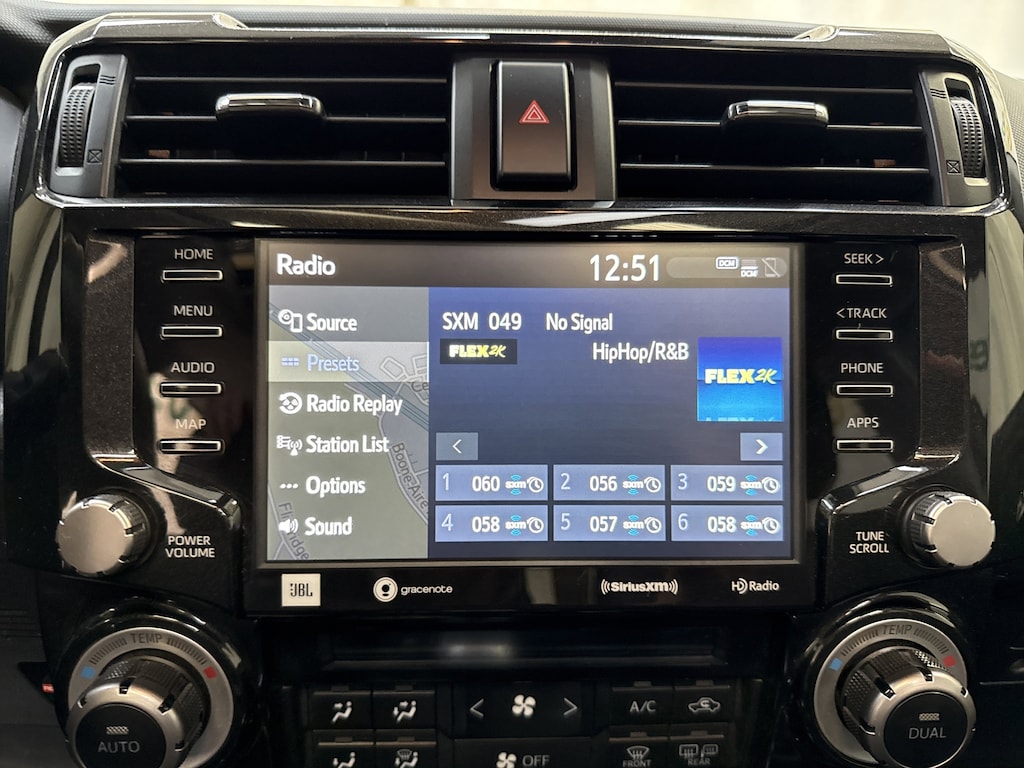 There's a lot to like in our TRD Pro cabin, which comes with SofTex® heated power front seats with red headrest lettering, a leather-wrapped steering wheel, a TRD shift knob, dual-zone automatic climate control, and Smart Key access with pushbutton ignition. Impressive infotainment resources are standard and include an 8-inch touchscreen, connected navigation, Bluetooth®, Android Auto®/Apple CarPlay®, WiFi/Amazon Alexa compatibility, and a 15-speaker JBL sound system.